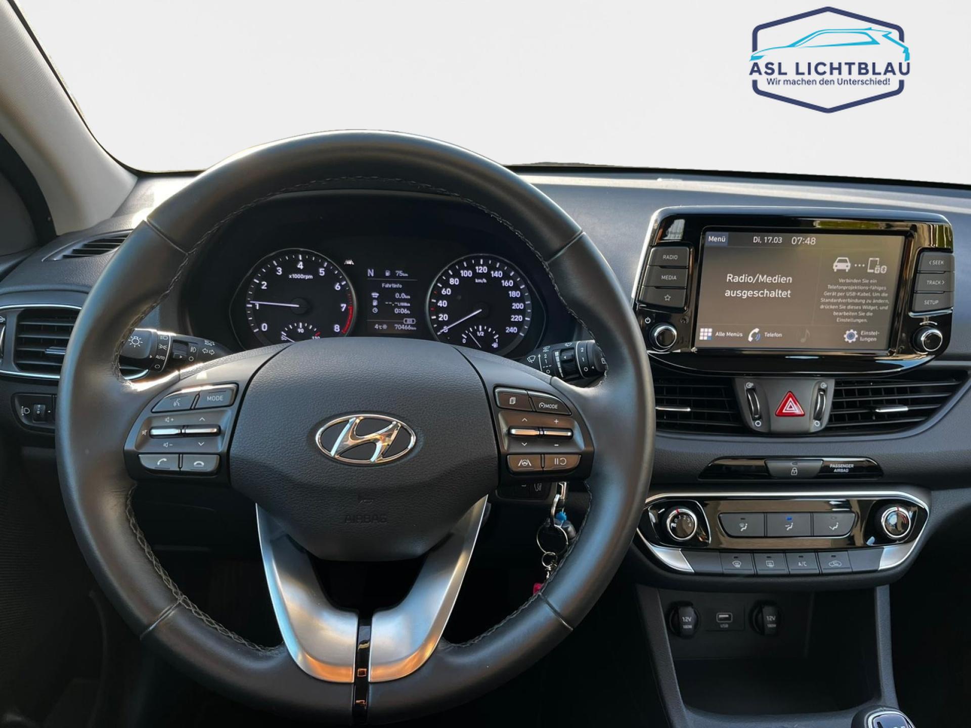 Hyundai I30 FL 5-TÜRER 1.0 BENZIN TURBO M/T (48V) SELECTDer I30 FL 5-TÜRER 1.0 BENZIN TURBO M/T (48V) SELECT überzeugt als moderner Kompaktwagen mit effizienter Mildhybrid-Technologie und hoher Alltagstauglichkeit. Der 1.0-Liter-Turbobenziner mit 48-Volt-Unterstützung bietet eine ausgewogene Kombination aus Dynamik und Wirtschaftlichkeit – ideal für den täglichen Einsatz sowie längere Fahrten.AusstattungFunktionspaket - Das Funktionspaket erweitert die Komfort- und Alltagsausstattung und sorgt für zusätzlichen Nutzen im täglichen Einsatz.Unsere ServicesProbefahrt jederzeit möglichFaire Inzahlungnahme Ihres aktuellen FahrzeugsIndividuelle Finanzierungs- und LeasingangeboteWichtige HinweiseDie vollständigen Ausstattungsdetails entnehmen Sie bitte dem offiziellen Fahrzeugprospekt.Abbildungen können beispielhaft sein und vom Original abweichen.
