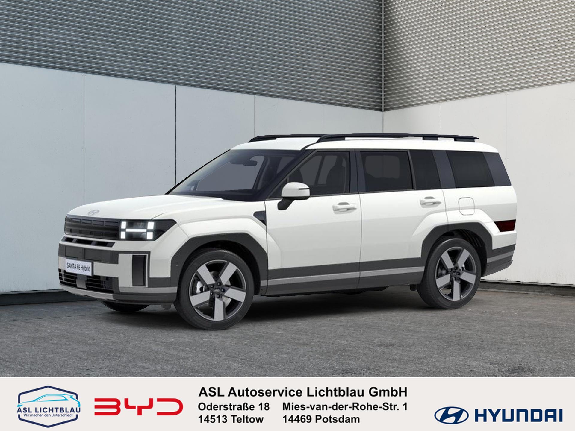 Hyundai SANTA FE HEV 5-Sitzer (MY25) 1.6 T-GDI Hybrid 215 PS 6-AT 4WD INTRO – Jetzt bei ASL Auto-Service Lichtblau in Teltow entdecken! Modern, geräumig und effizient – der neue Hyundai SANTA FE HEV in der Ausstattungslinie INTRO verbindet kraftvollen Hybridantrieb mit durchdachter Vielseitigkeit und stilvollem SUV-Design. Perfekt für Familien und Abenteurer mit hohem Anspruch an Komfort und Technik.Herstellergarantie bis 02/2030 – Sorgenfreies Fahren mit langfristigem Schutz Unsere Services• Probefahrt vereinbaren – Erleben Sie den SANTA FE live vor Ort• Inzahlungnahme möglich – Einfach und fair Ihr bisheriges Fahrzeug eintauschen• Flexible Finanzierung & Leasing – Individuell für Ihre Bedürfnisse zugeschnitten Wichtige Hinweise• Die genauen Ausstattungsdetails entnehmen Sie bitte dem offiziellen Fahrzeugprospekt.• Abbildungen können beispielhaft sein und vom Original abweichen. Besuchen Sie uns in Teltow bei ASL Auto-Service Lichtblau und überzeugen Sie sich selbst vom neuen Hyundai SANTA FE HEV INTRO. Wir freuen uns auf Ihren Besuch!