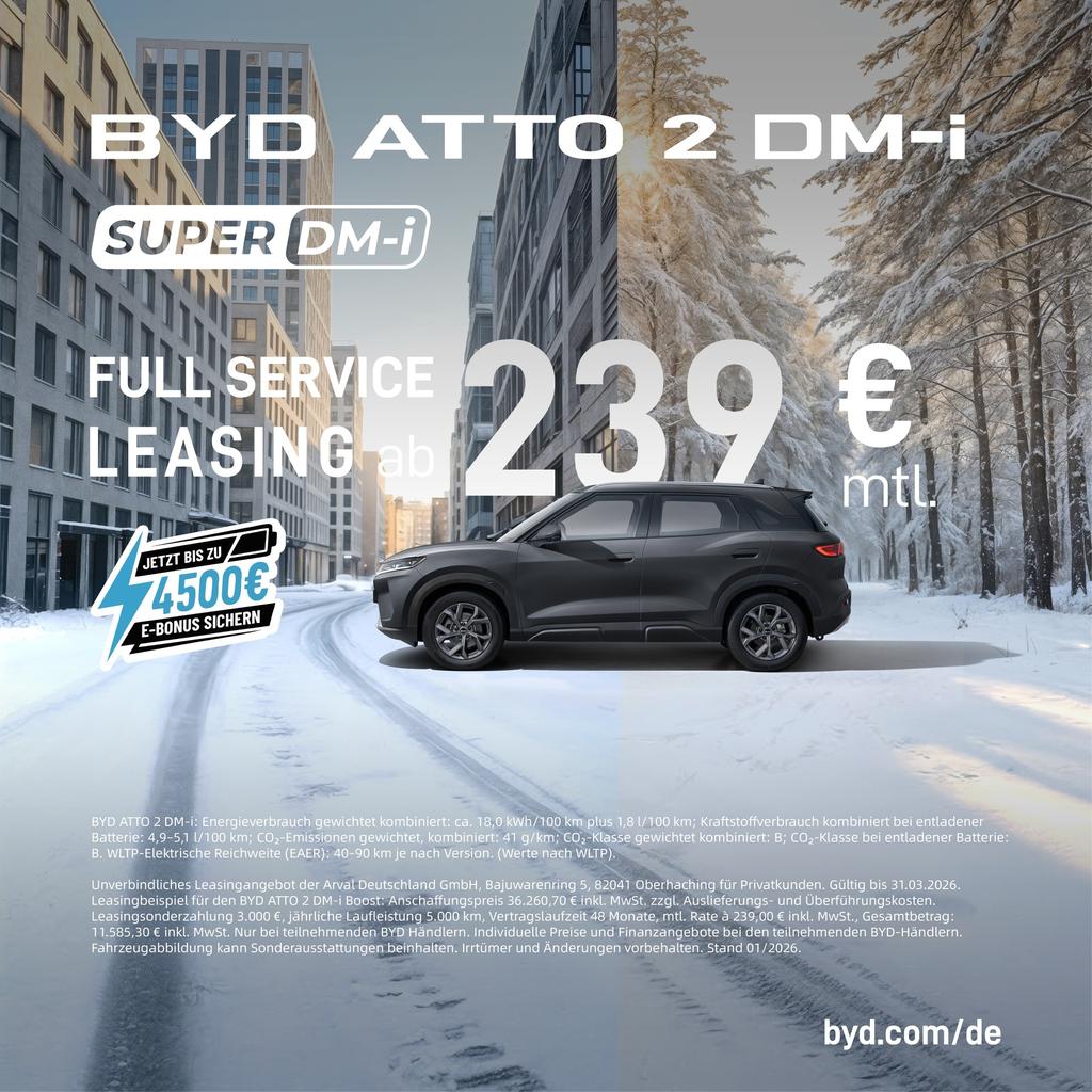 Jetzt ist der perfekte Zeitpunkt, auf nachhaltige Mobilität umzusteigen! Gönnen Sie sich oder Ihren Liebsten ein neues BYD Elektro- oder Plug-in-Hybridfahrzeug und profitieren Sie von attraktiven Leasingkonditionen für kurze Zeit. Bei ASL Lichtblau erwarten Sie exklusive BYD Aktionsangebote, ...